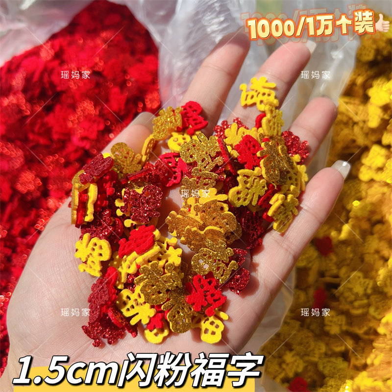 新年闪粉字体福字饰品配件小福字体diy发夹蝴蝶结装饰配件