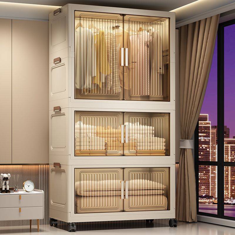 折叠式衣物收纳柜家用简易衣柜双开门塑料柜子卧室房间婴儿储物柜