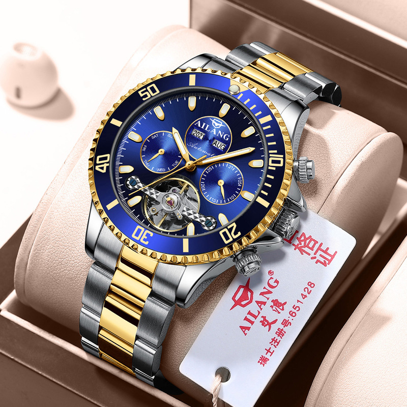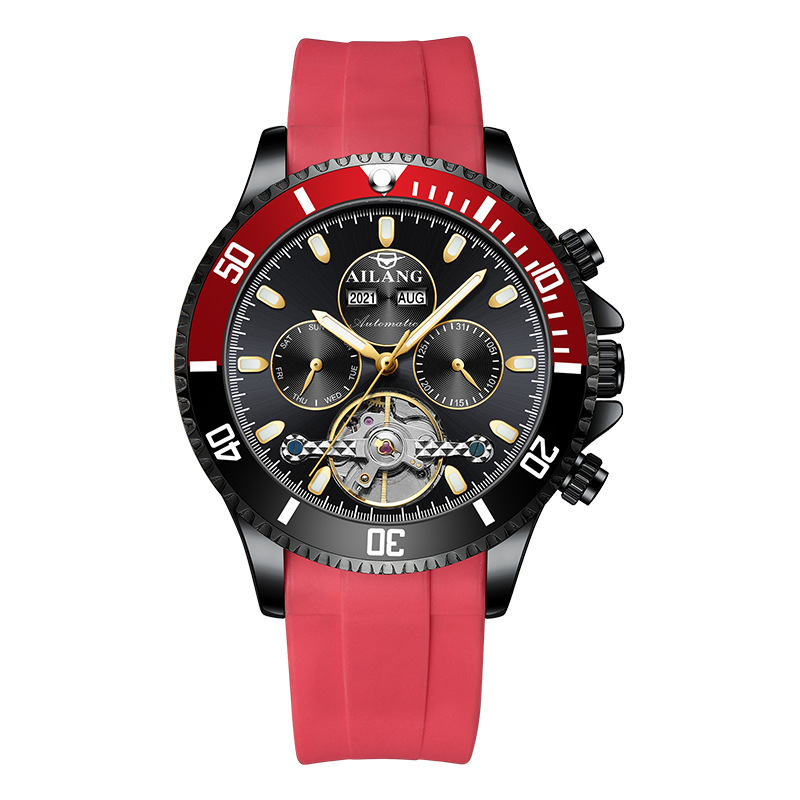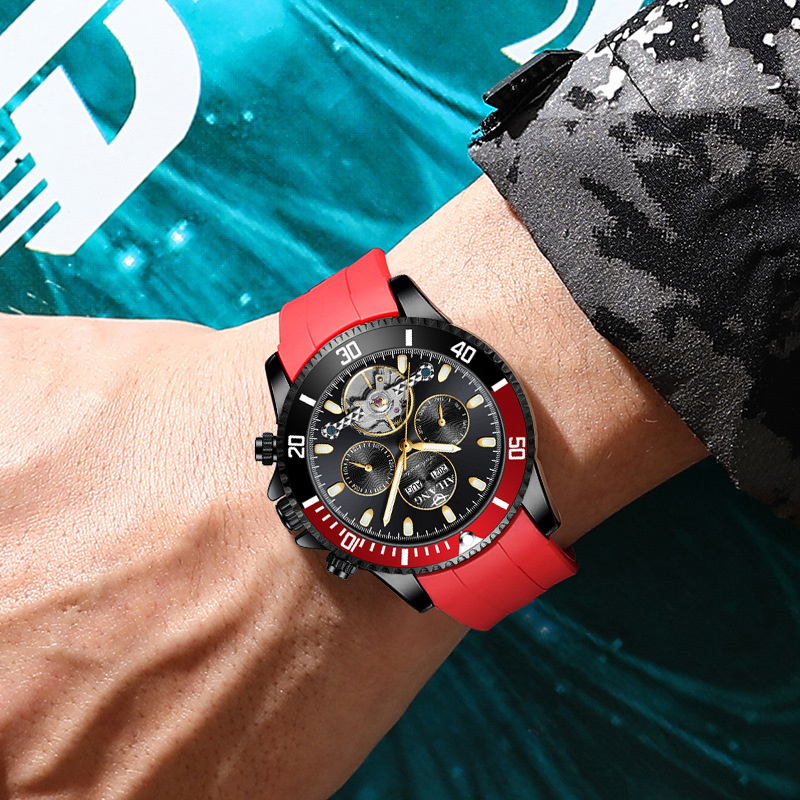 瑞士正品新款艾浪全自动机械男士表商务绿水鬼镂空夜光日历硅胶表