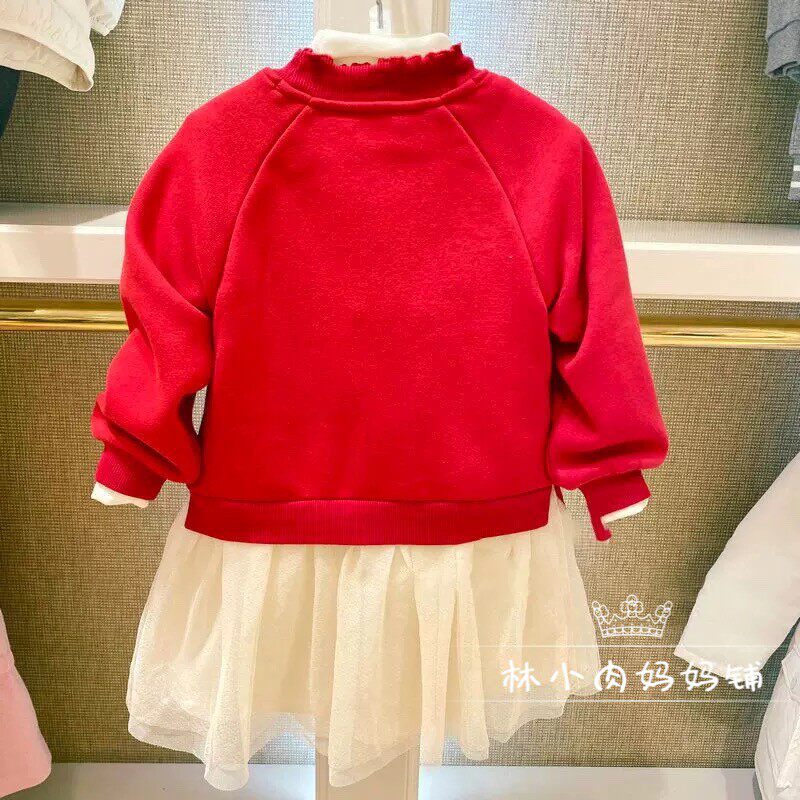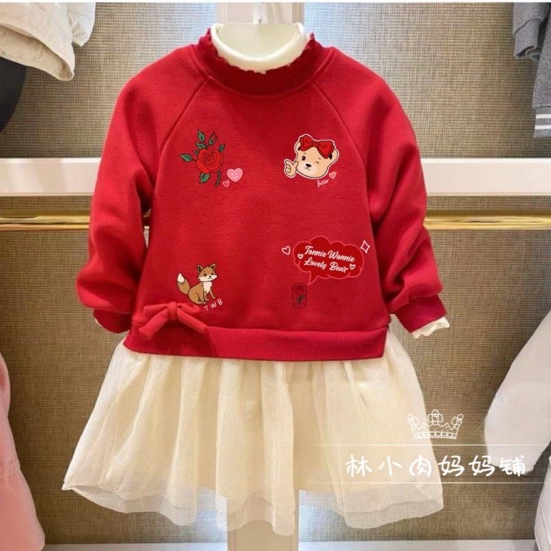 小熊童装24秋冬款女童保暖加绒卫衣裙儿童长袖连衣裙TWOM204T52A