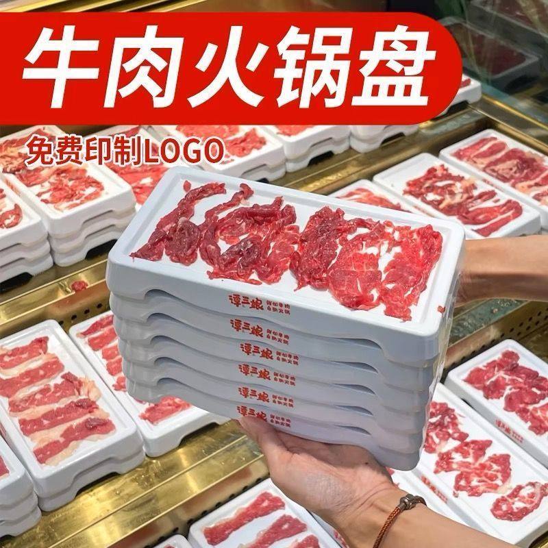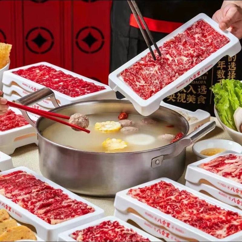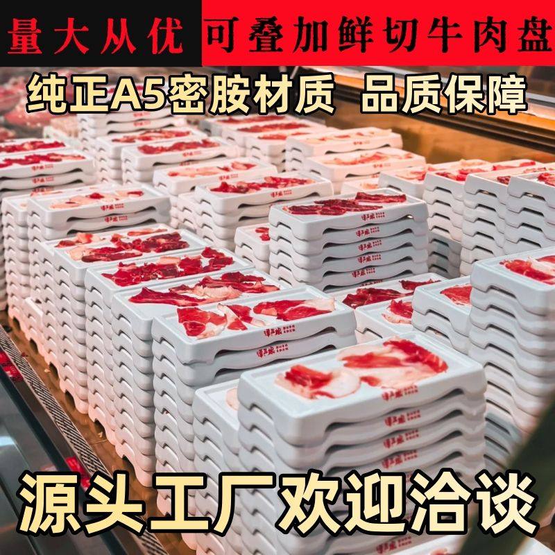 潮汕牛肉自助火锅配菜盘长方形谭三娘八合里密胺鲜切牛肉摆平盘子