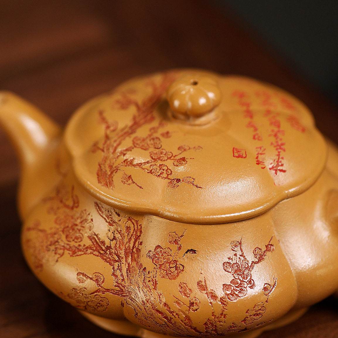 筋纹明炉原矿黄金段手工刻画宜兴紫砂壶工堂直播供货源头茶具