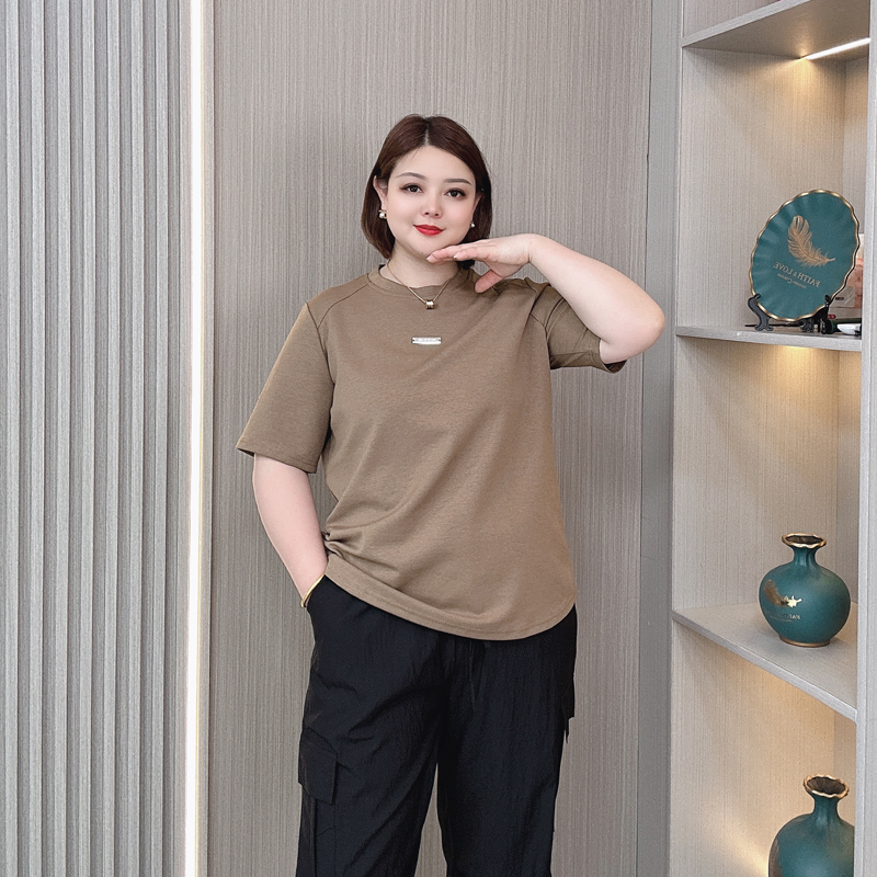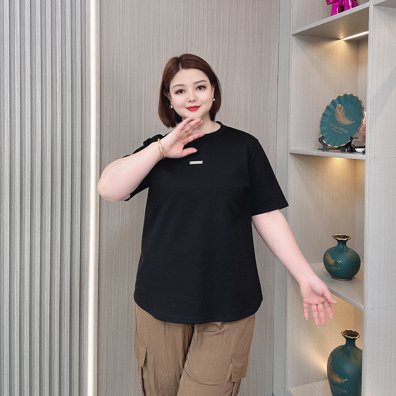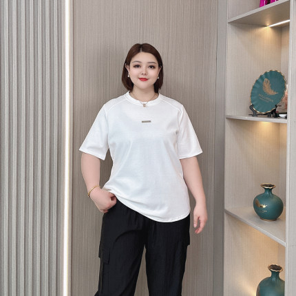 圆领短袖T恤2025夏季新款大码女装胖mm宽松显瘦贴标洋气休闲上衣