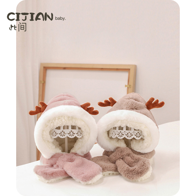 宝宝防寒保暖加厚加绒一体帽子