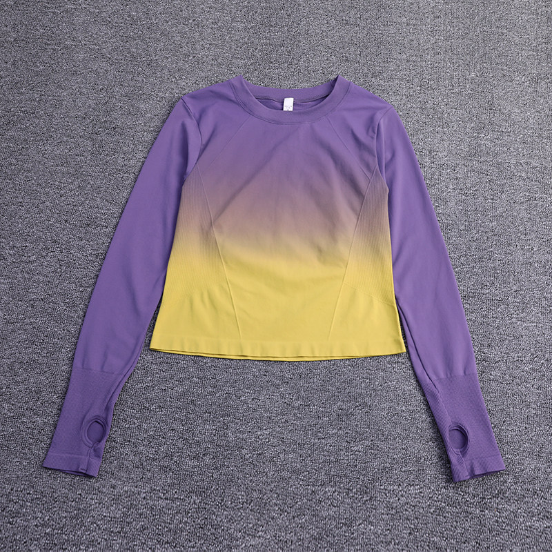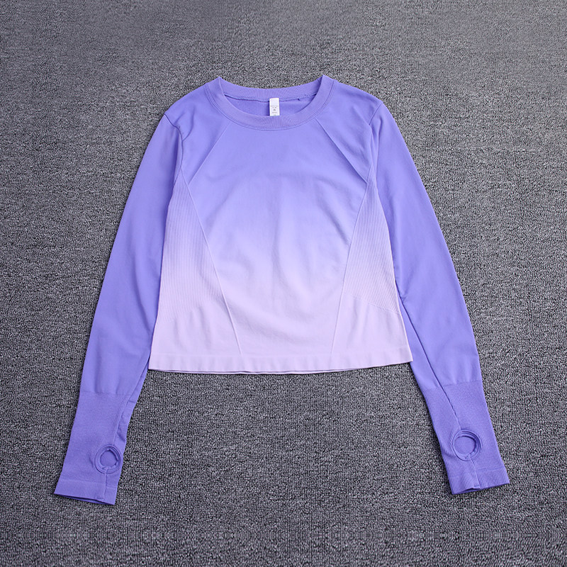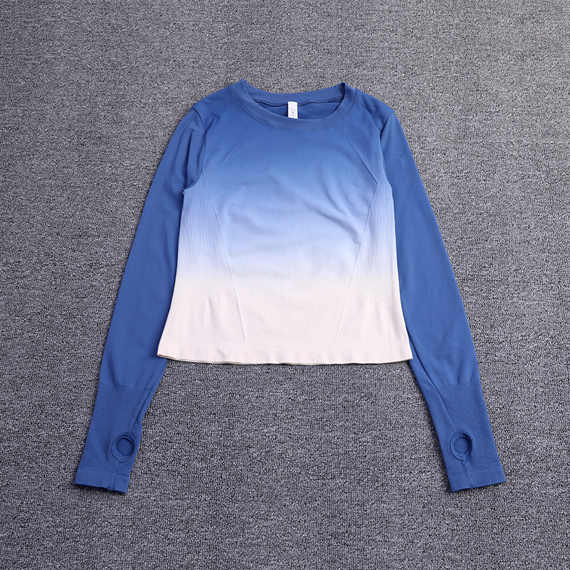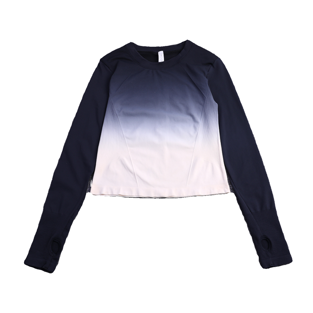 新款渐变短款运动长袖女显瘦紧身透气速干跑步瑜伽上衣轻薄健身服