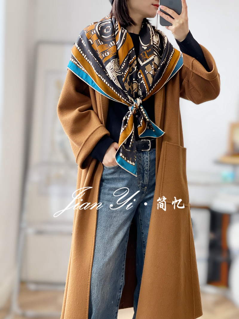 美拉德风格搭配真丝桑蚕丝方巾