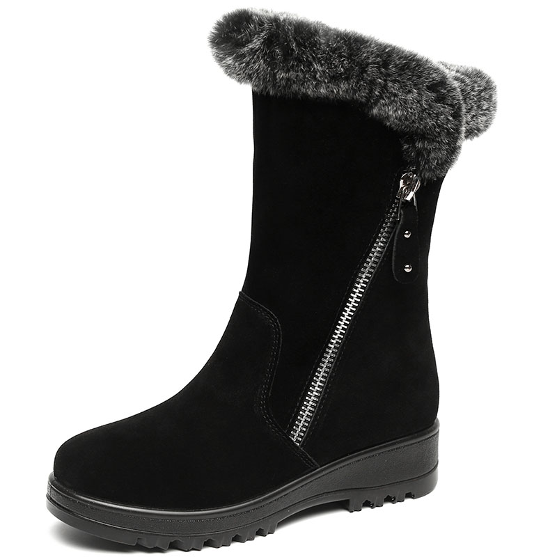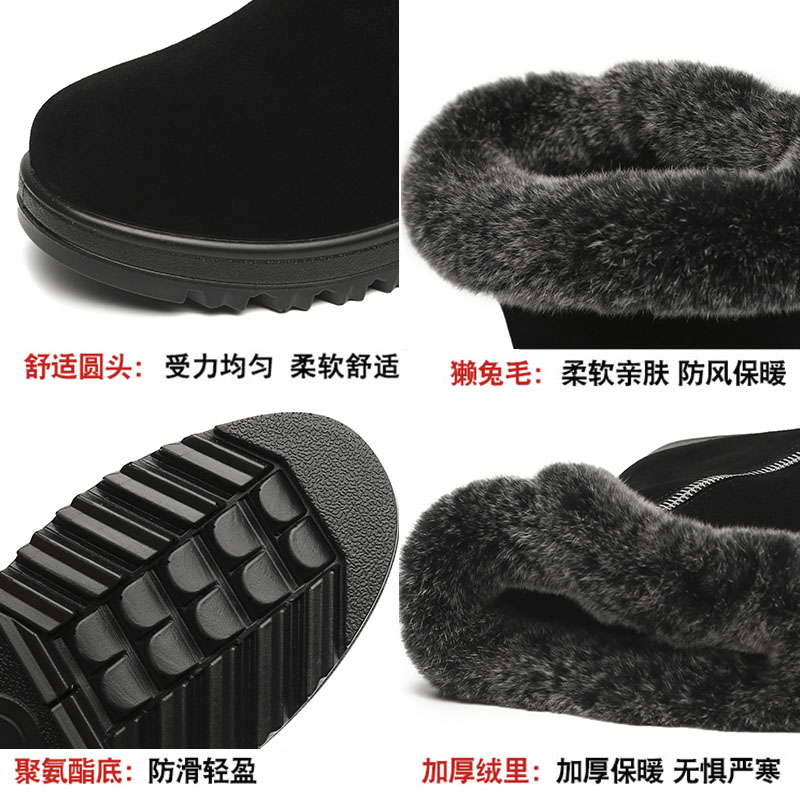 中老年雪地靴女皮靴坡跟高腰长筒棉靴带绒中年妈妈真皮中筒女靴子