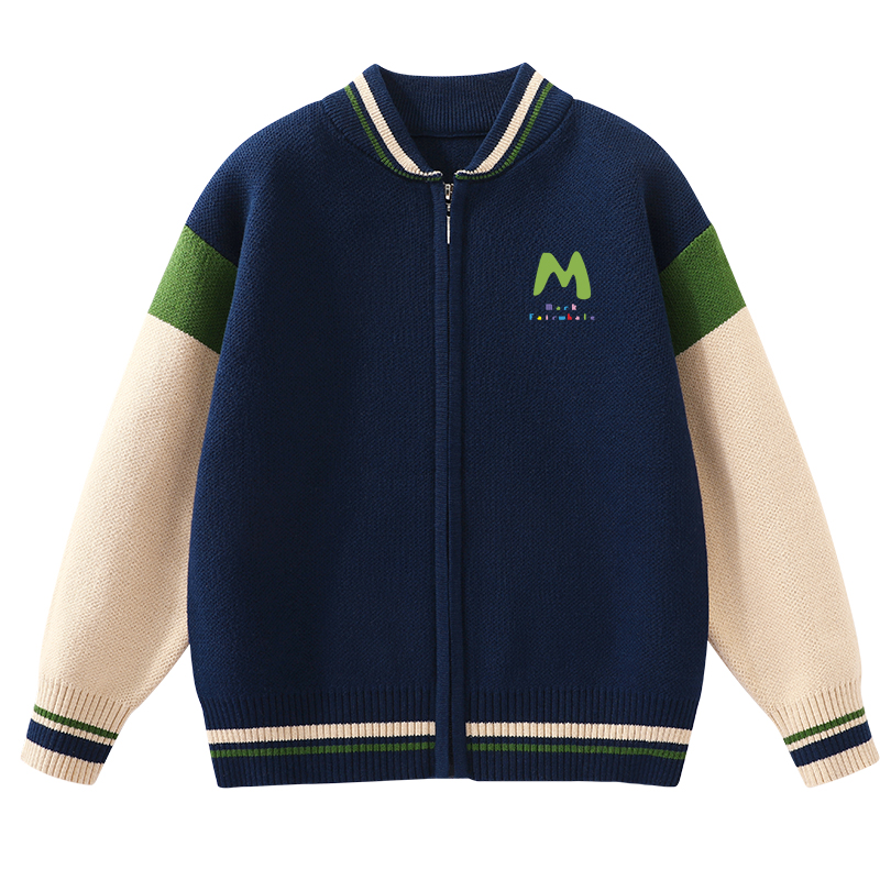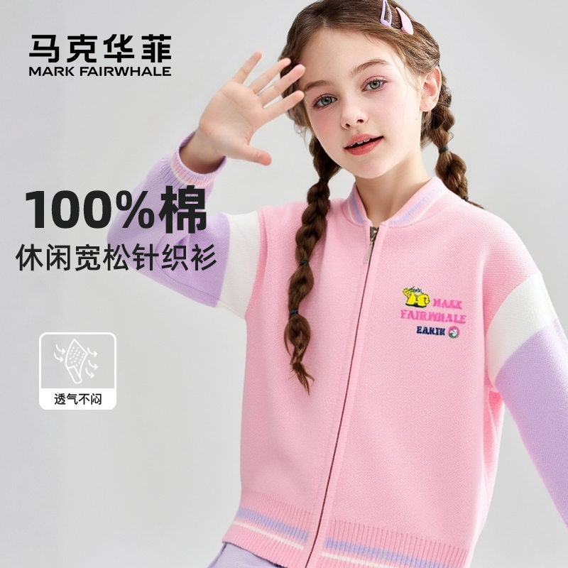 马克华菲2025秋冬季男女宝宝小学生纯棉针织开衫插肩袖立领上衣jz