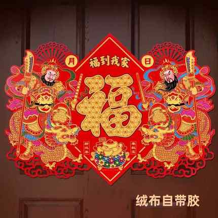 绒布自粘门神门贴2024龙年春节新春守单门将新年装饰年画单张大门