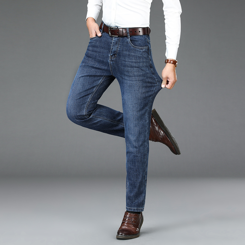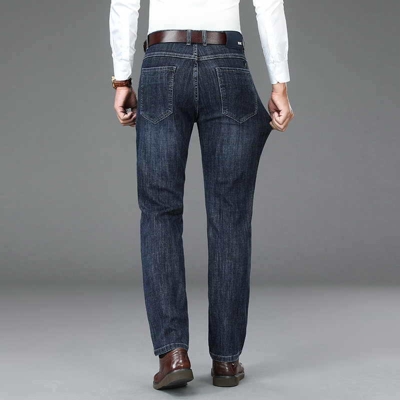 秋季宽松直筒中年厚款牛仔男裤