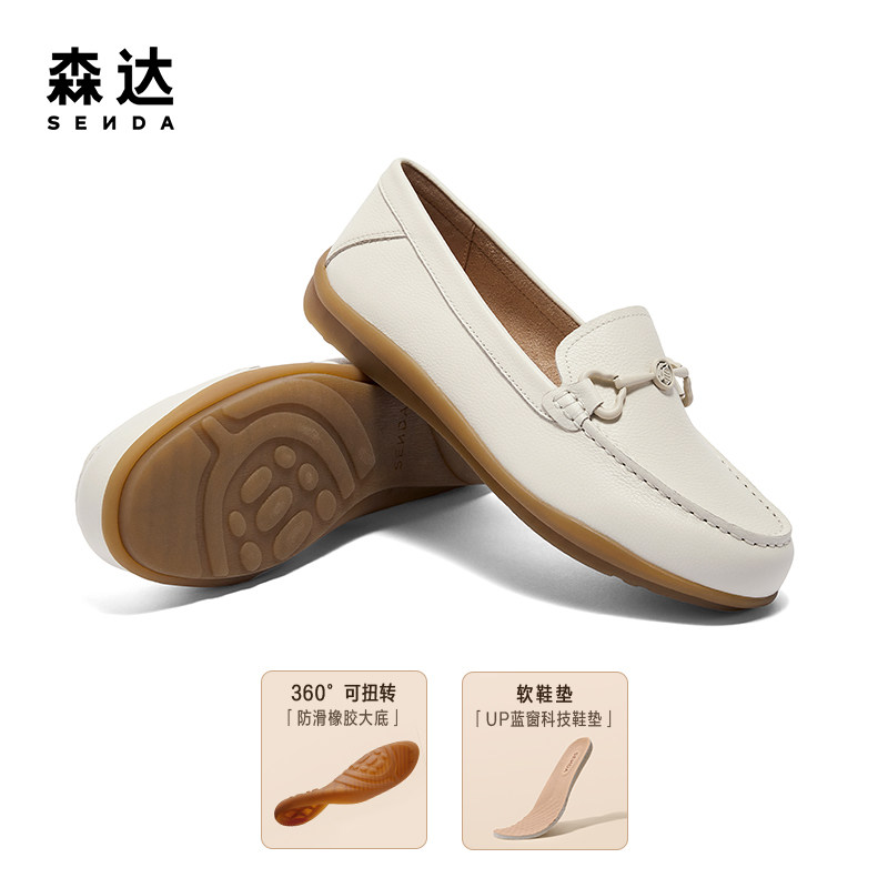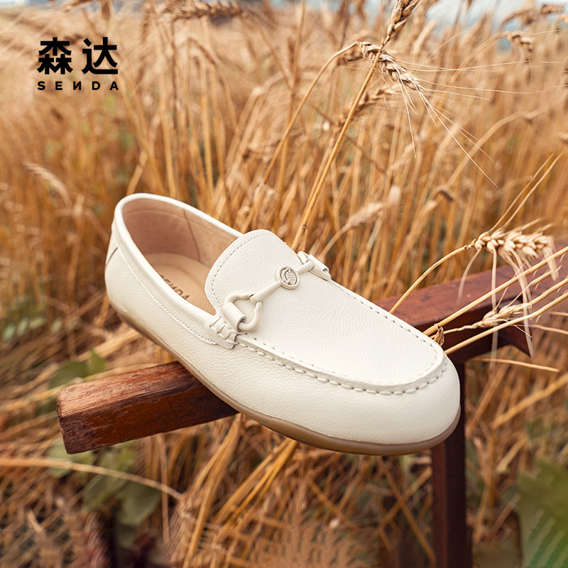 森达可可乐福鞋女鞋春秋商场同款真皮柔软舒适百搭通勤白色单鞋
