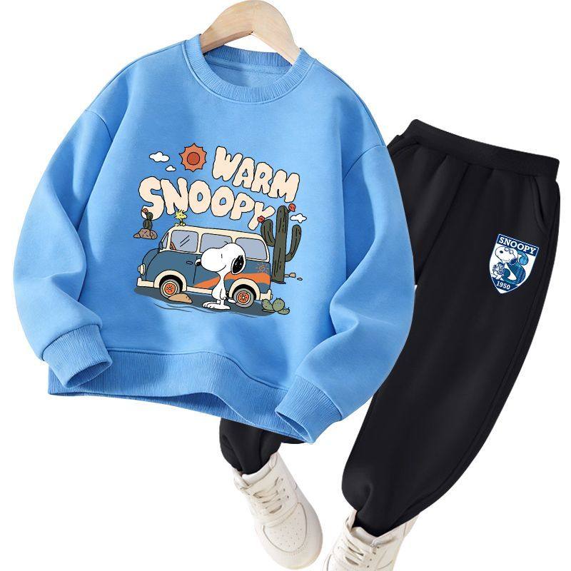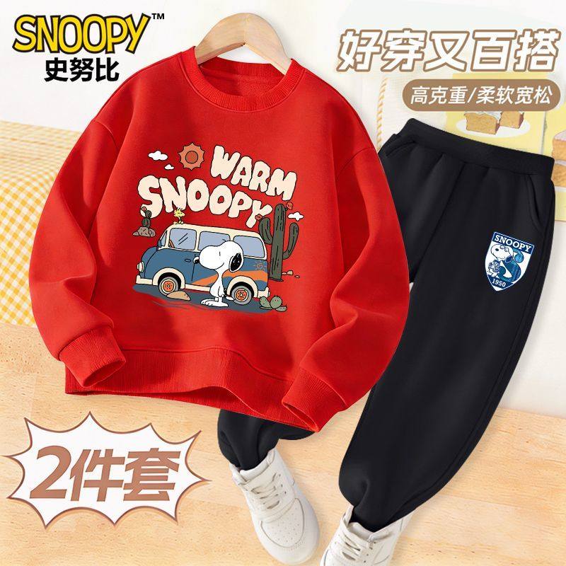 史努比男童春装2026新款套装儿童衣服酷帅男孩卫衣春秋裤子两件套