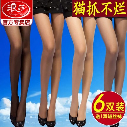 浪莎黑丝丝袜女薄款夏连裤袜春秋款防勾丝性感长筒黑肉色菠萝光腿