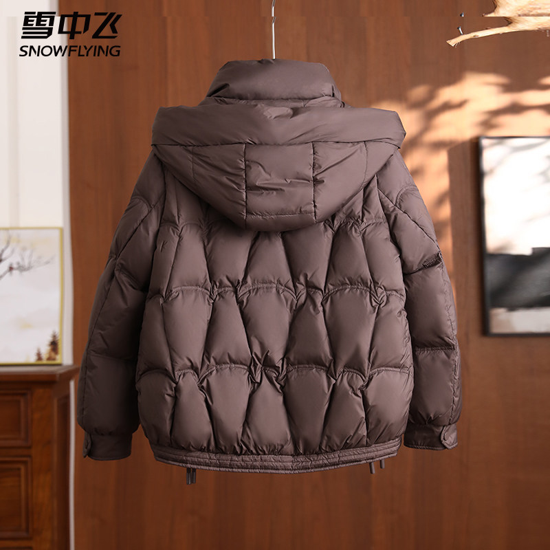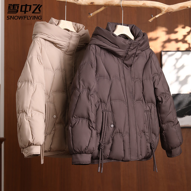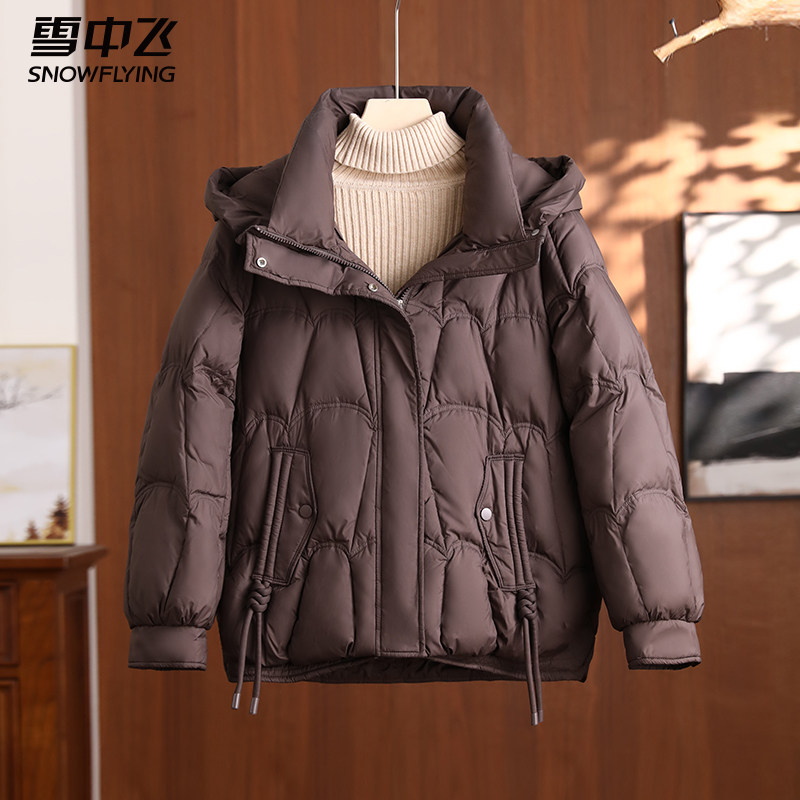 雪中飞妈妈短款羽绒服女款冬季中年女士连帽冬装新款中老年厚外套