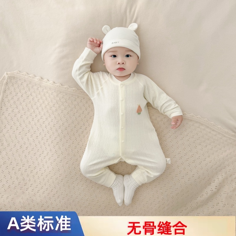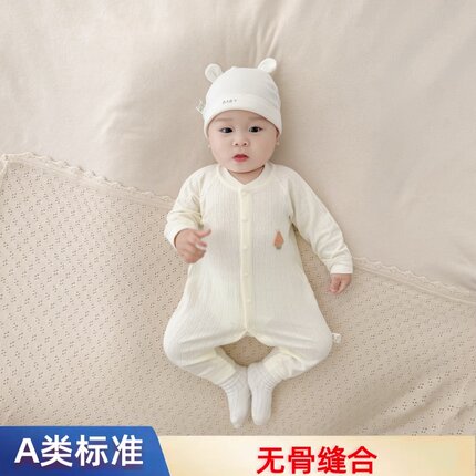 婴儿连体衣新生儿衣服纯棉长袖睡衣春秋款初生宝宝女秋季哈衣A类