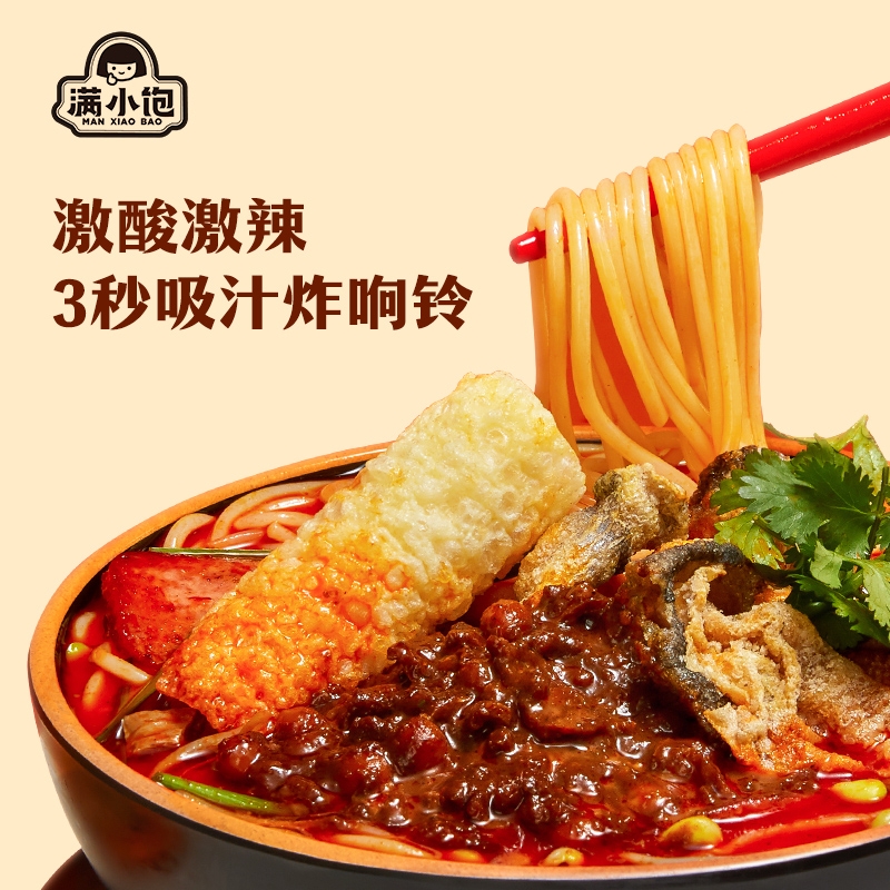 满小饱肥汁米线袋装香辣港式酸辣汤米粉方便泡面代餐夜宵食品310g