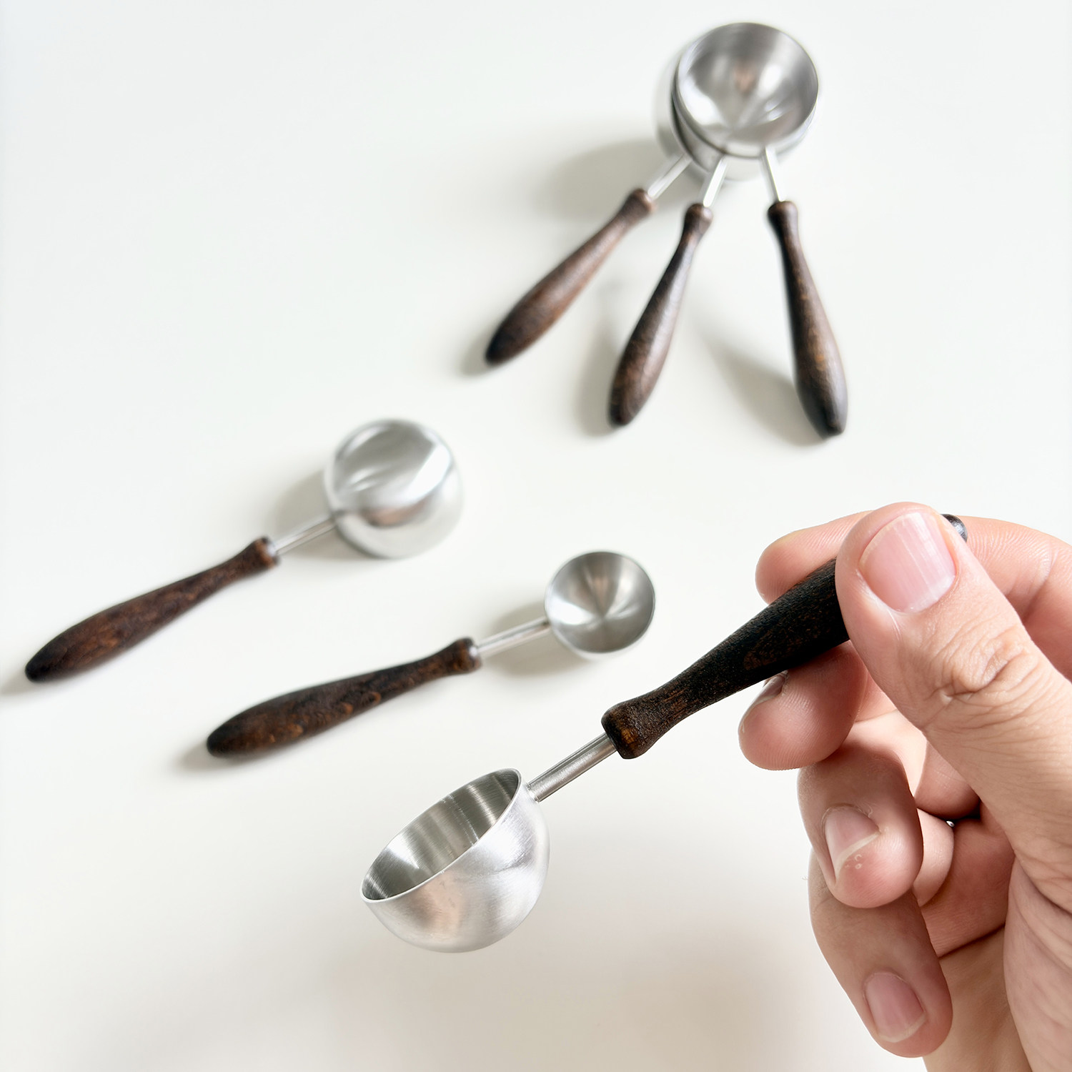 304不锈钢咖啡豆量勺烘焙计量匙果粉勺子木柄定量克勺调味酱料匙