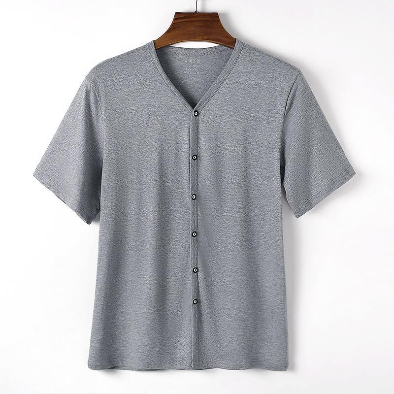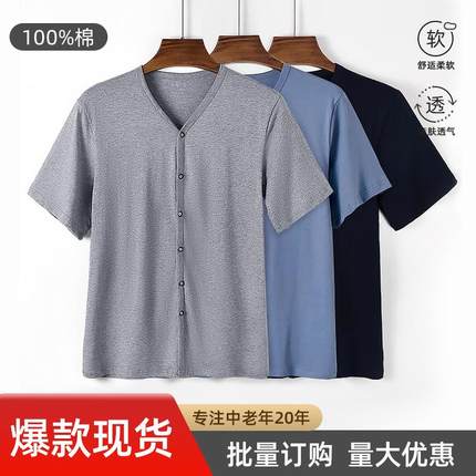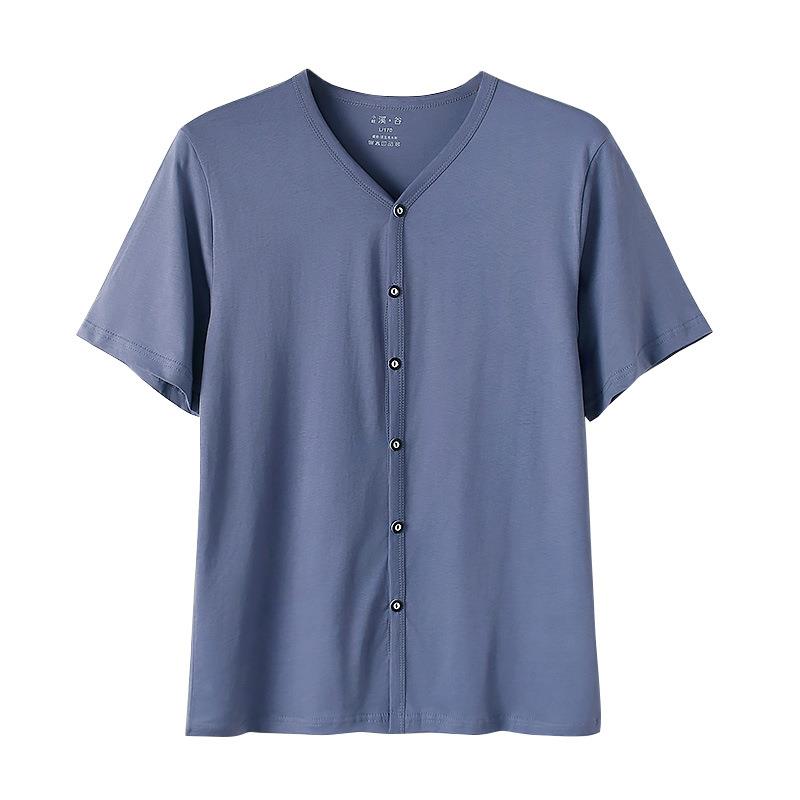男纯棉开衫短袖T恤宽松纯色休闲百搭上衣透气宽松版吸湿排汗