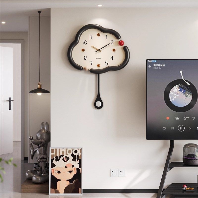 美世达中古风挂钟客厅2025新款家用高级感钟表轻奢挂墙免打孔时钟