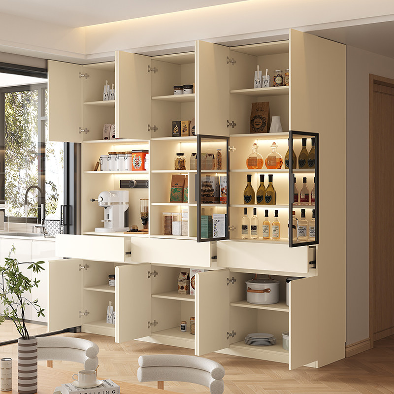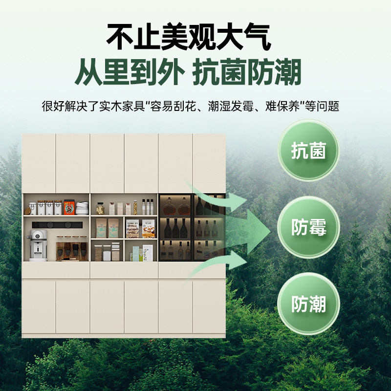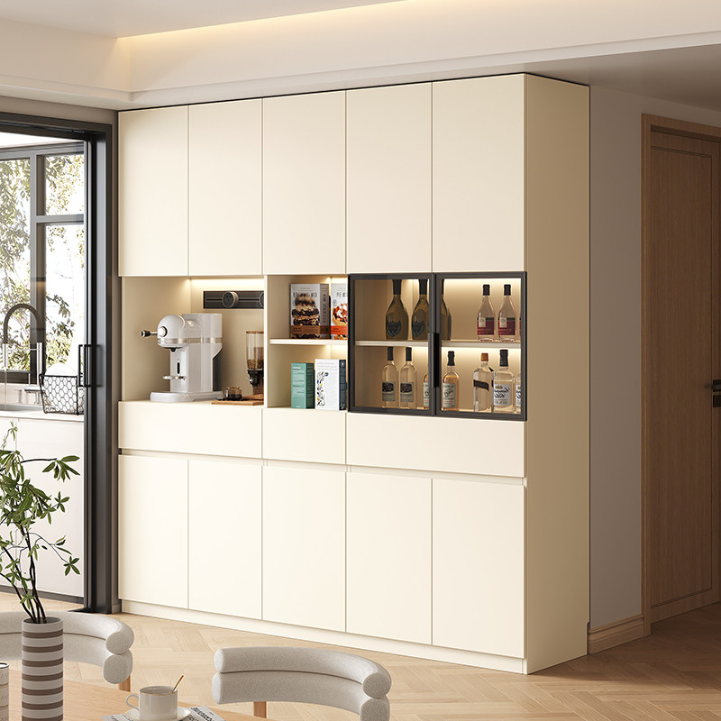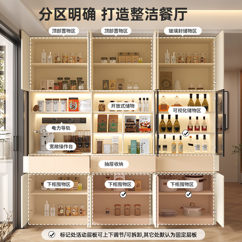 真实木定制餐边柜橡木靠墙一体玻璃碗柜客厅家用白色收纳储物橱柜