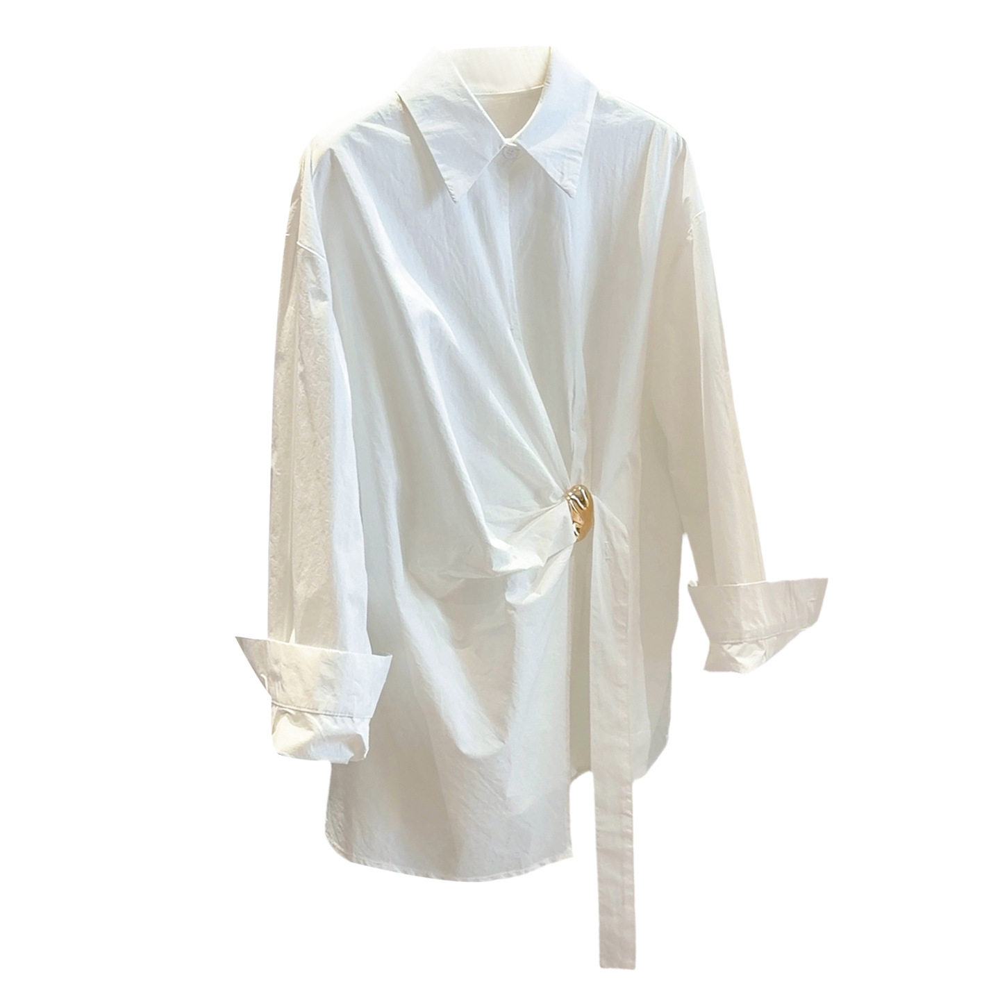 2026春新款法式小众设计感收腰显瘦白色长袖衬衫女气质中长款衬衣