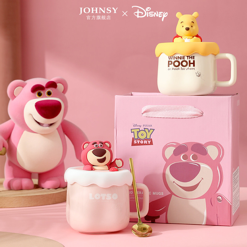迪士尼草莓熊咖啡马克杯子带盖水杯可爱高颜值女办公室创意礼物