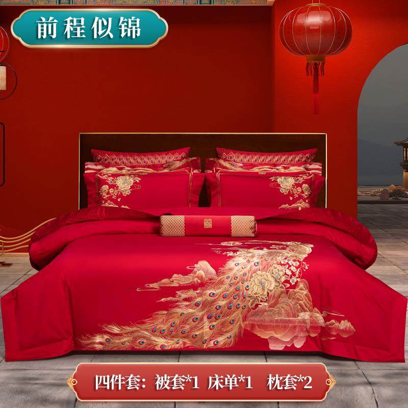 正品高端中四套结婚婚礼式婚庆陪嫁纯棉床单被套件奢华高档床上用