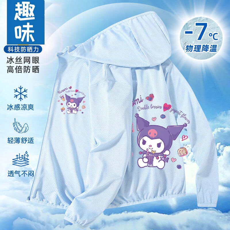 玉桂狗儿童连帽防晒衣夏季男童女童库洛米拉链连帽网眼皮肤衣外套