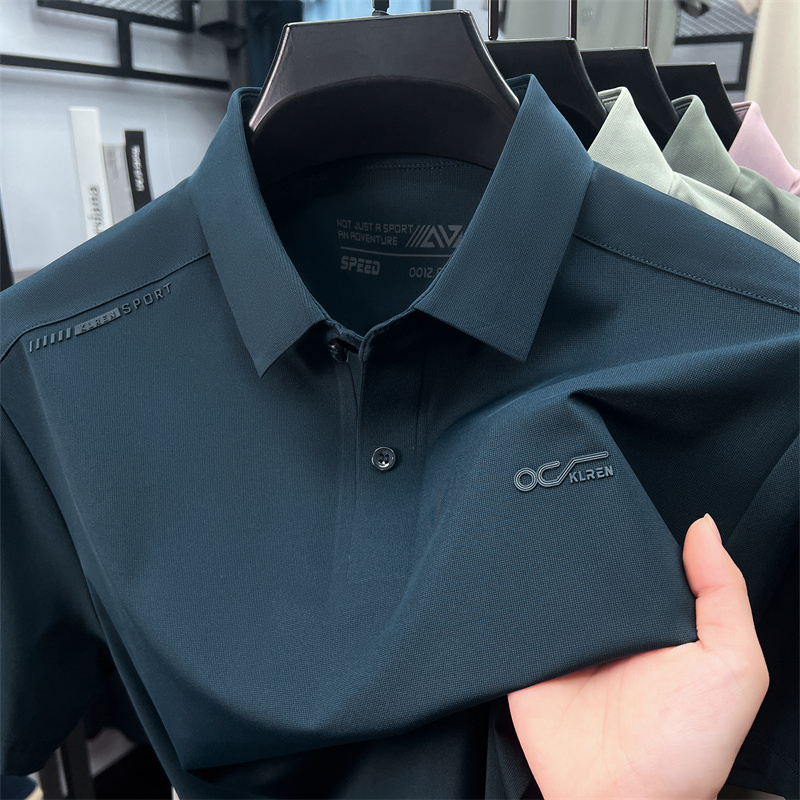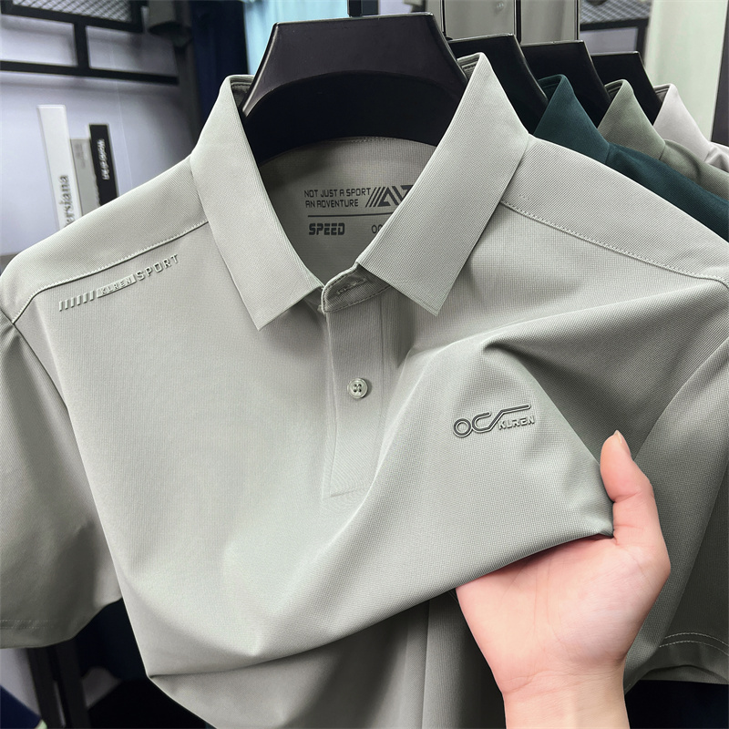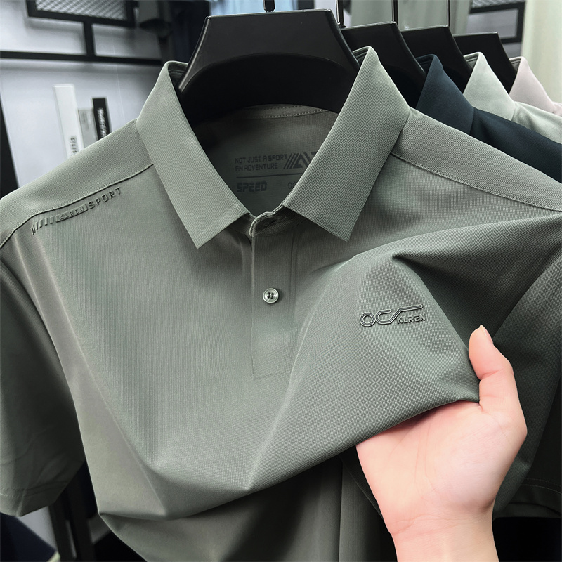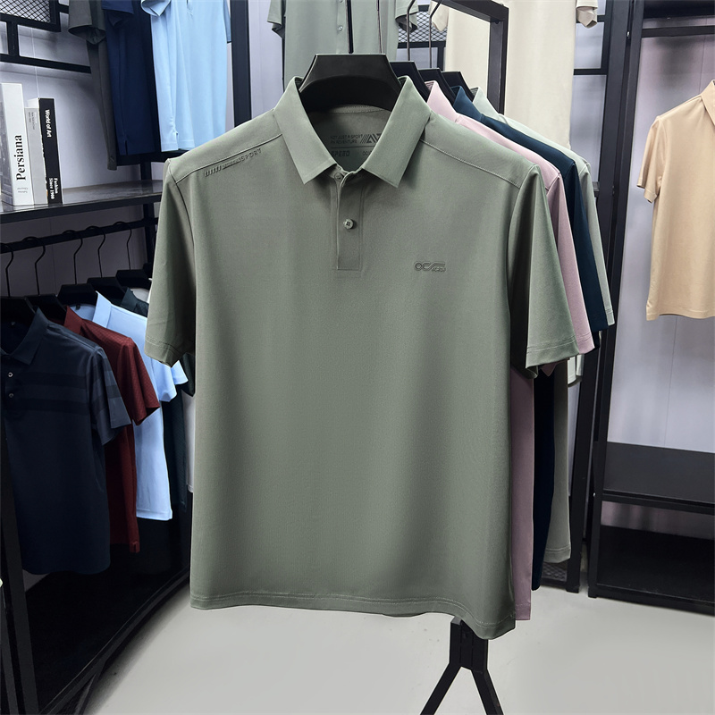 夏季新款冰丝短袖t恤男士翻领纯色中年爸爸装POLO衫休闲上衣潮流