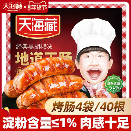 【40根】天海藏地道王肠火山石台湾烤肠原味黑胡椒台式热狗小香肠