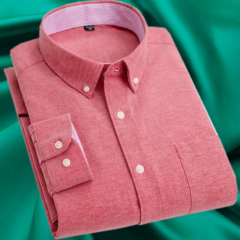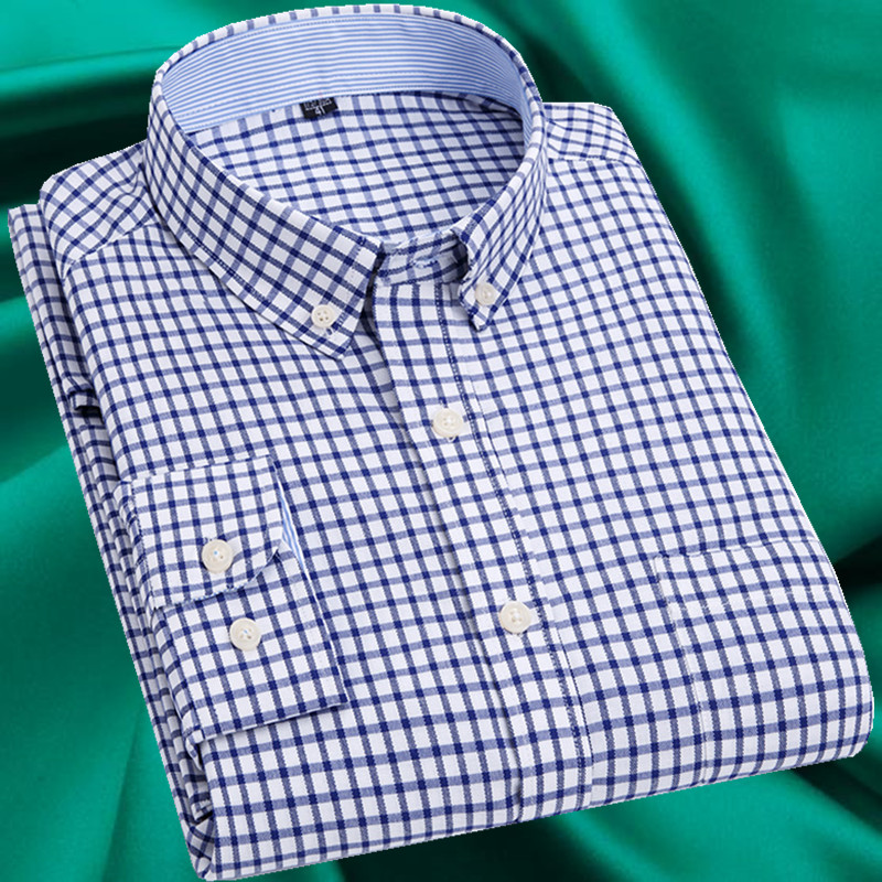 中老年百搭牛津纺衬衫男长袖爸爸装春秋薄款男士寸衫宽松父亲衬衣