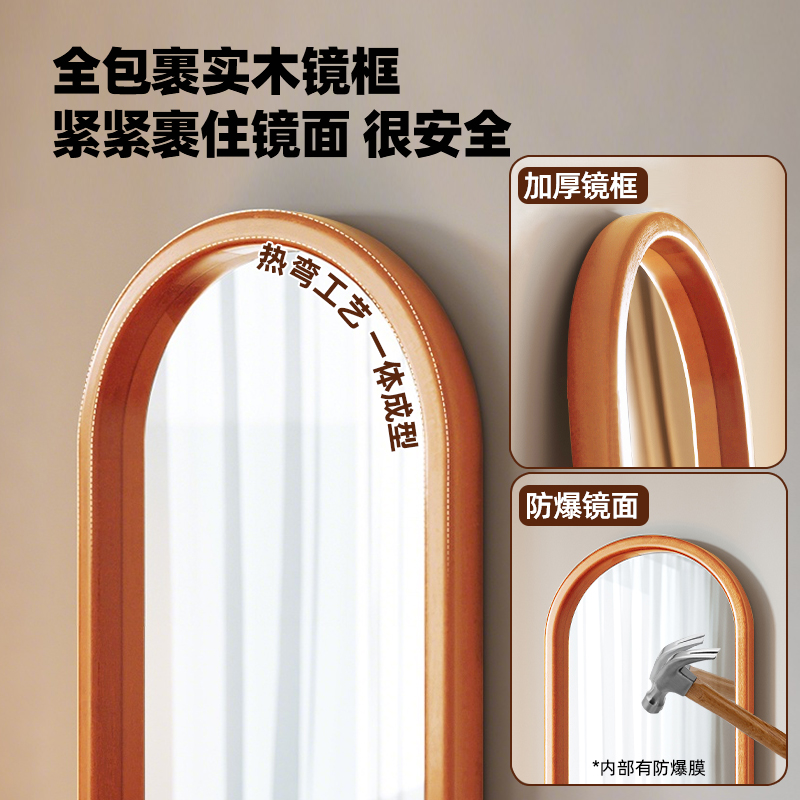家逸实木穿衣镜贴墙镜女生卧室全身镜家用玄关镜落地镜壁挂试衣镜