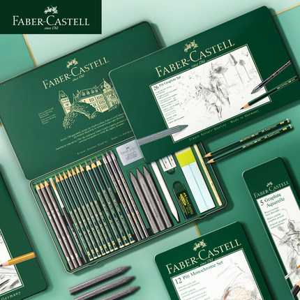 德国辉柏嘉素描铅笔绿辉套装水溶铅笔炭笔粉彩笔色粉笔9000铅笔艺术家大师绘画素描工具