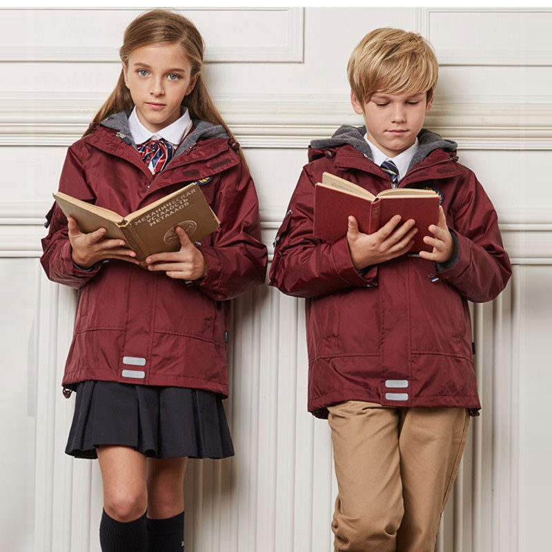 伊顿纪德校服男女童枣红色冬季防寒服中小学生保暖加绒外套10X020