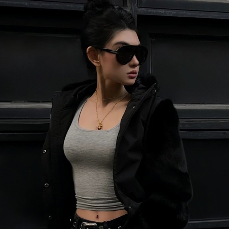 欧美风格时尚高领弹力修身蕾丝短袖T恤女装大码立领打底衫U含吊带