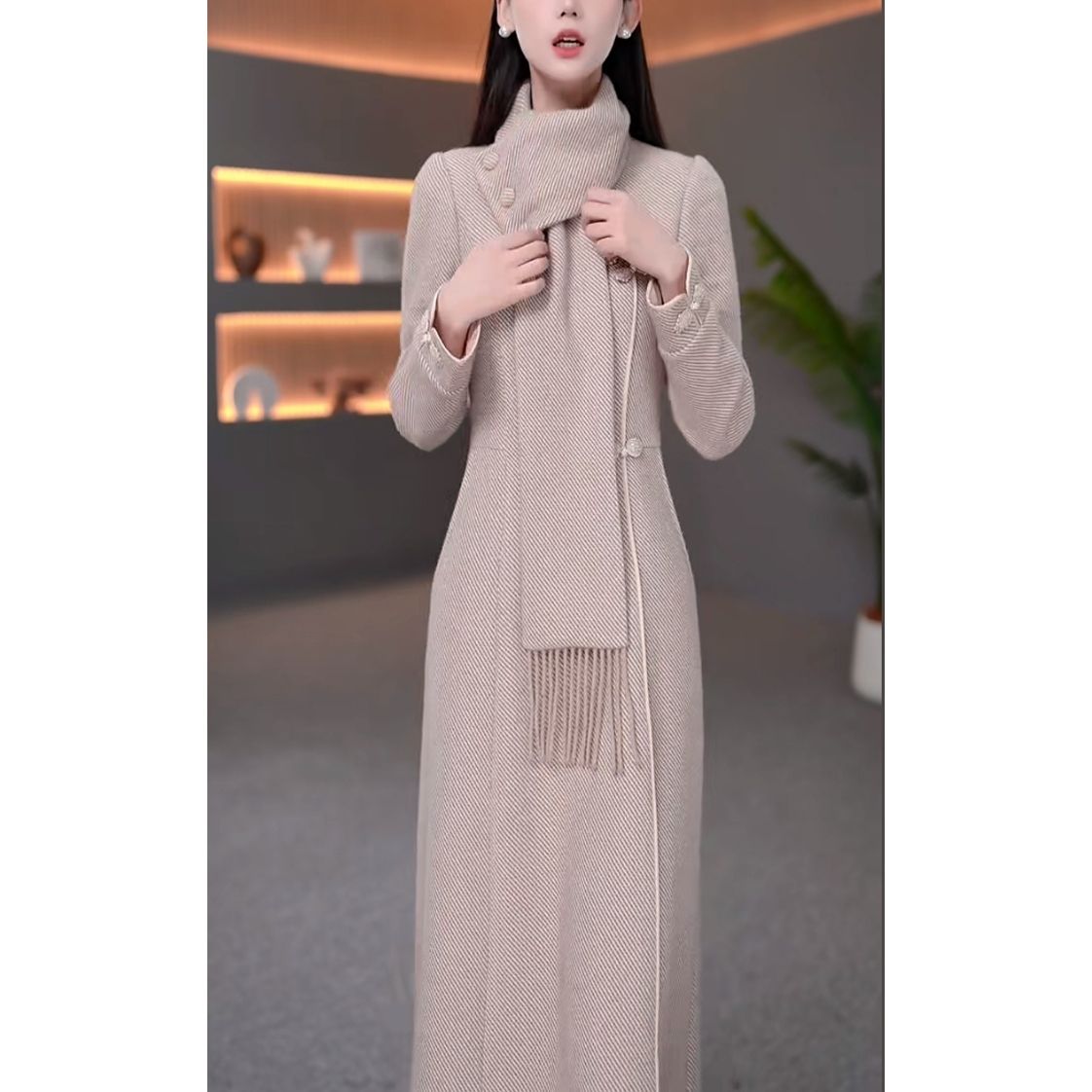 2025秋冬新款时尚设计感遮肚显瘦气质配大衣内搭旗袍围巾连衣裙潮