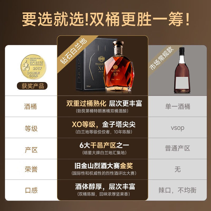 PASSTON/派斯顿XO白兰地钻石法国进口洋酒烈酒礼盒装700ml*2瓶