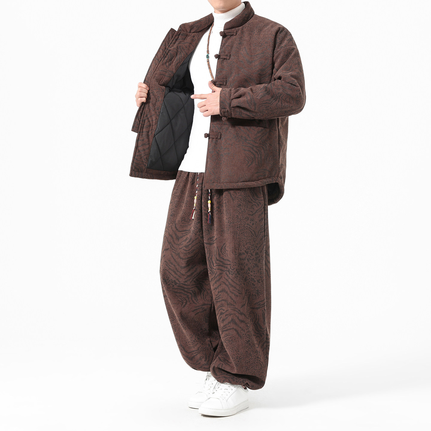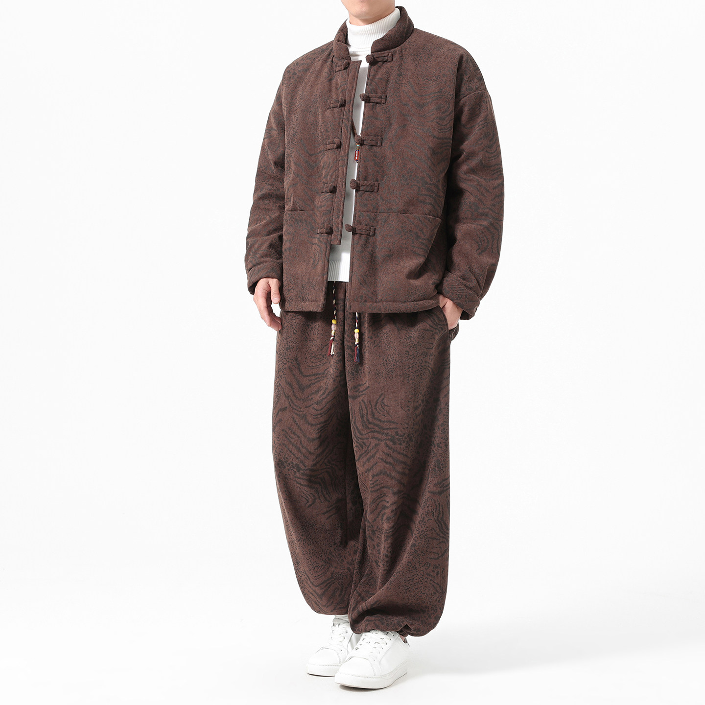 中老年休闲套装男新中式灯芯绒