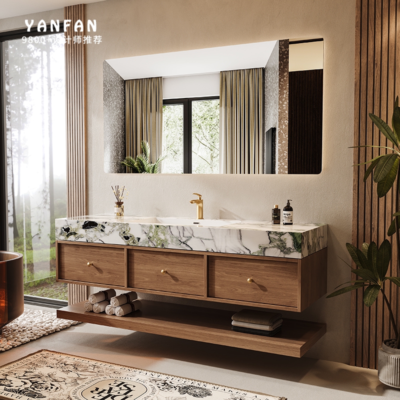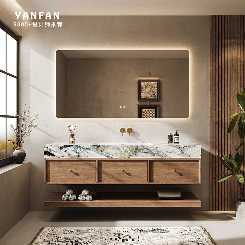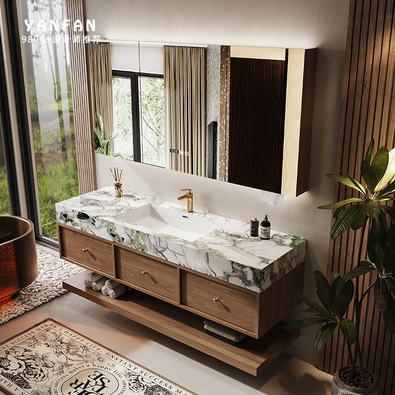 中古风浴室柜组合奢石冷翡翠洗漱台智能镜柜卫生间洗手池洗脸定制