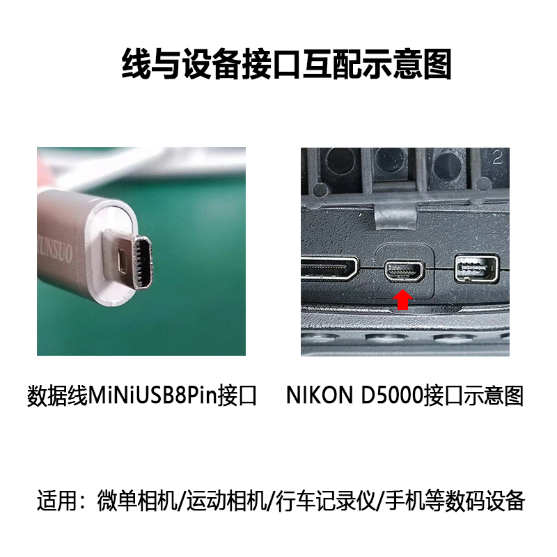 MiNi8Pin接口充电数据线适用尼康富士佳能微单运动相机等数码设备