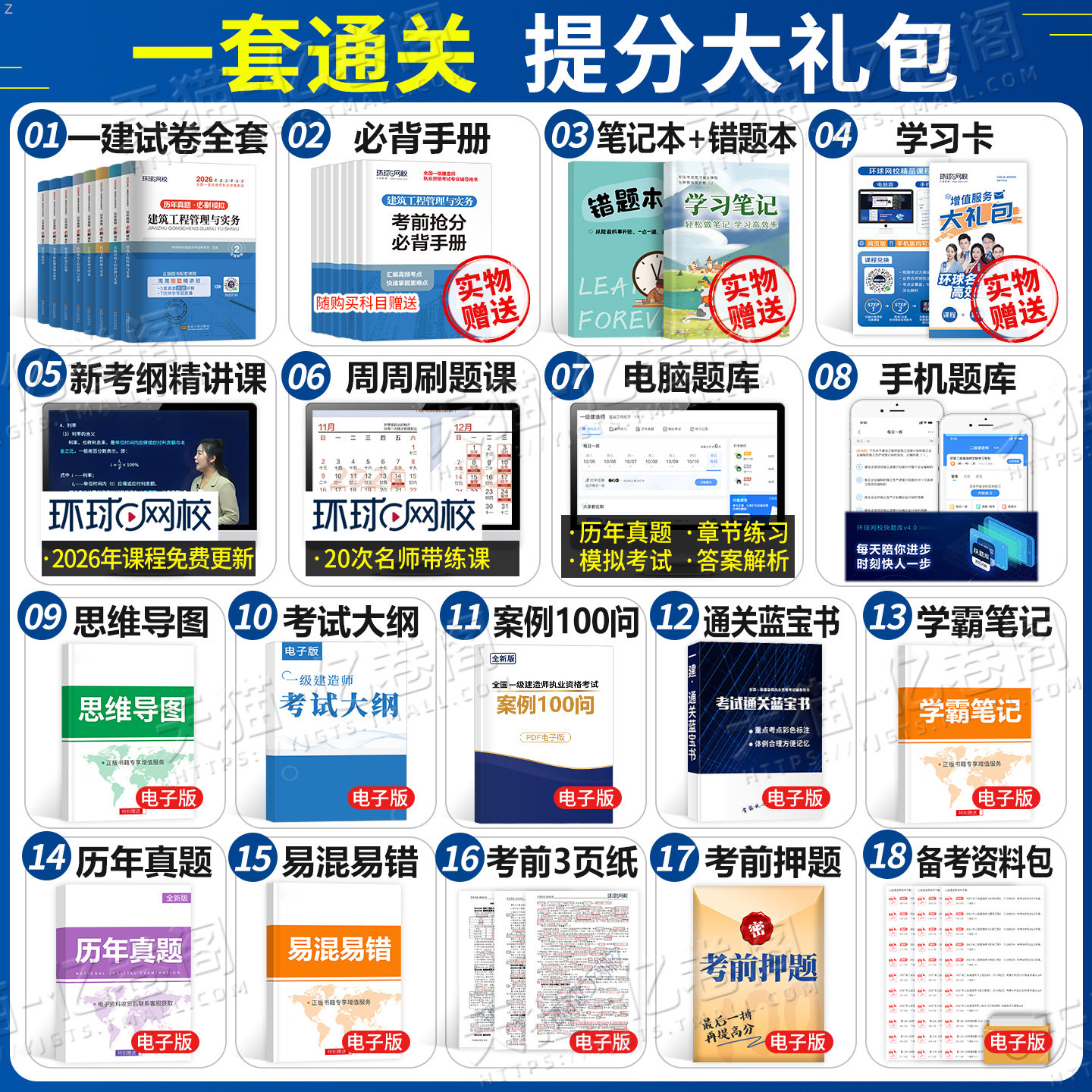 环球网校一建历年真题库试卷2026年一级建造师考试建筑实务市政机电公路水利口袋书周超26资料必刷题章节练习题案例三百问习题2025
