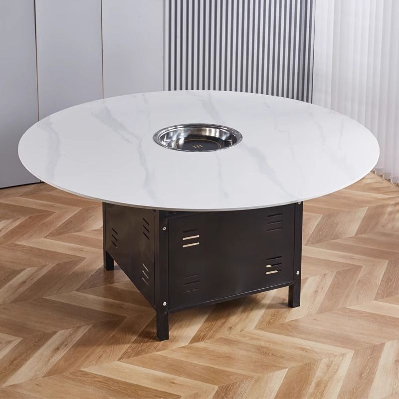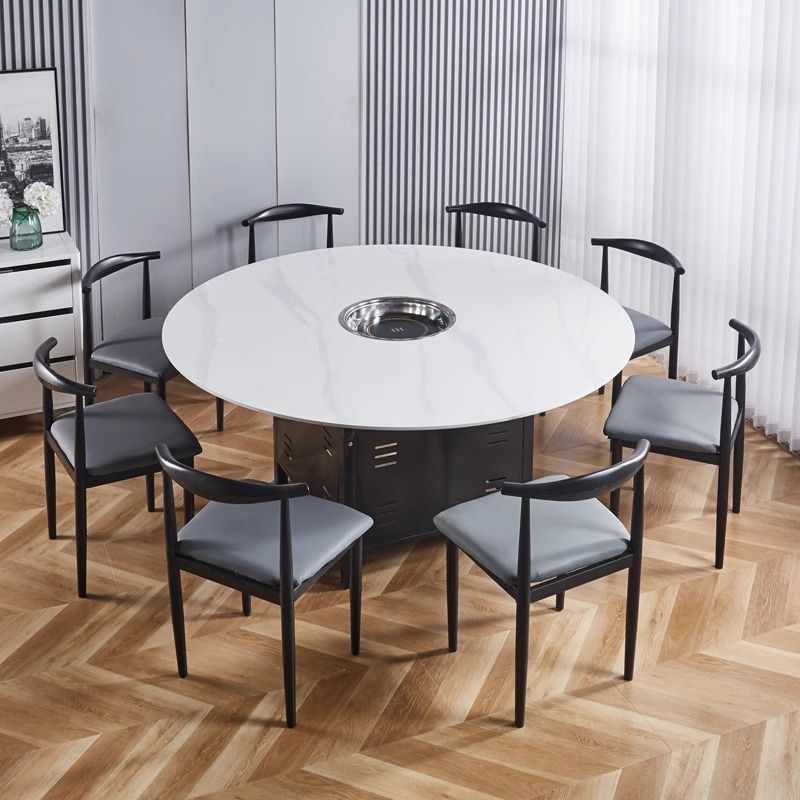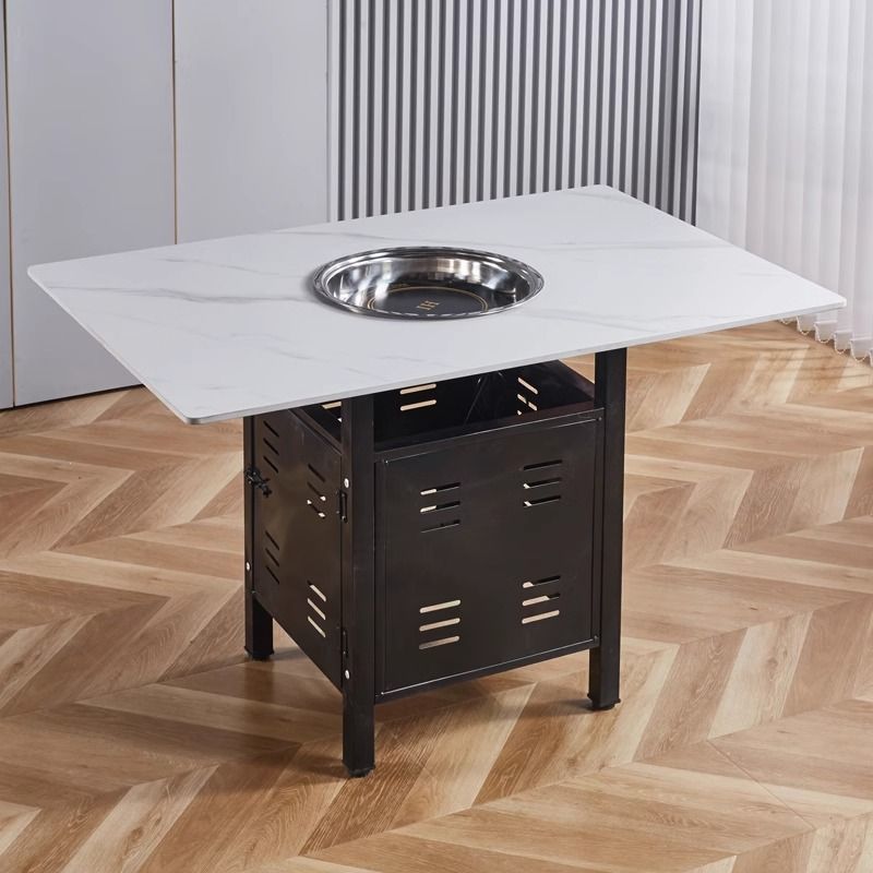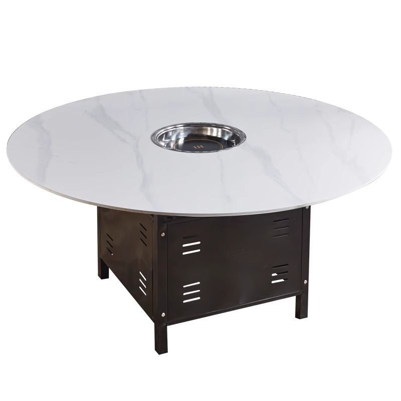 商用餐饮饭店岩板大理石火锅餐桌组合韩式煤气灶电磁炉一体桌椅