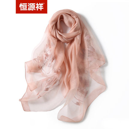 恒源祥丝巾披肩春秋桑蚕丝羊毛长纱巾围巾女冬款韩版丝巾夏沙滩巾