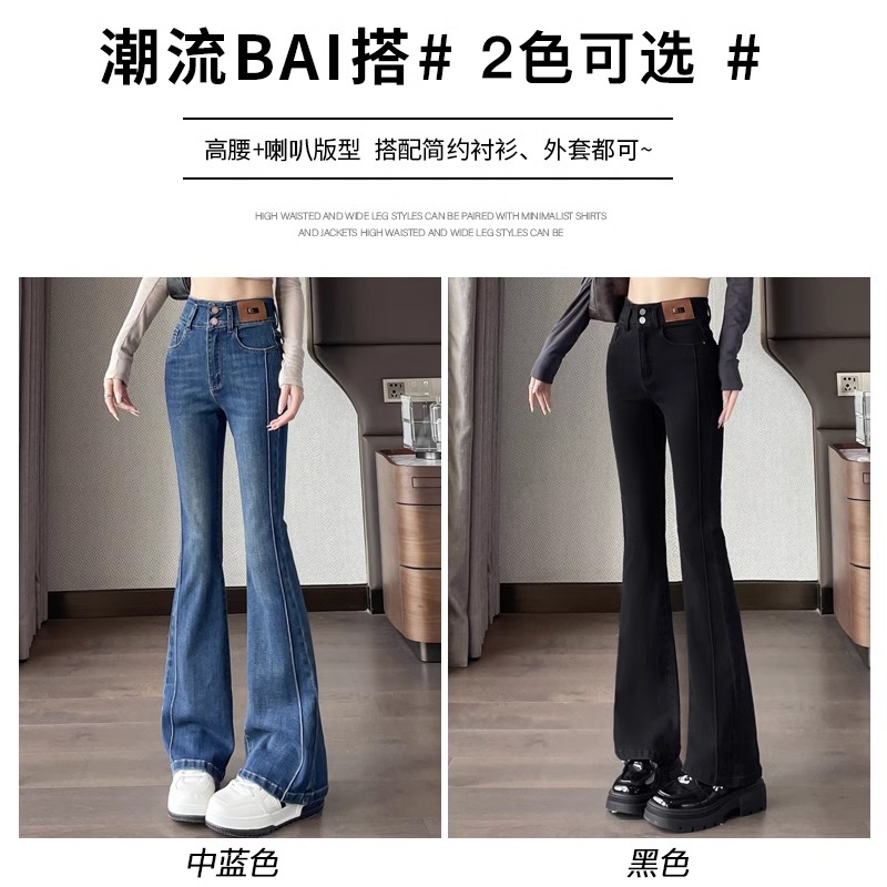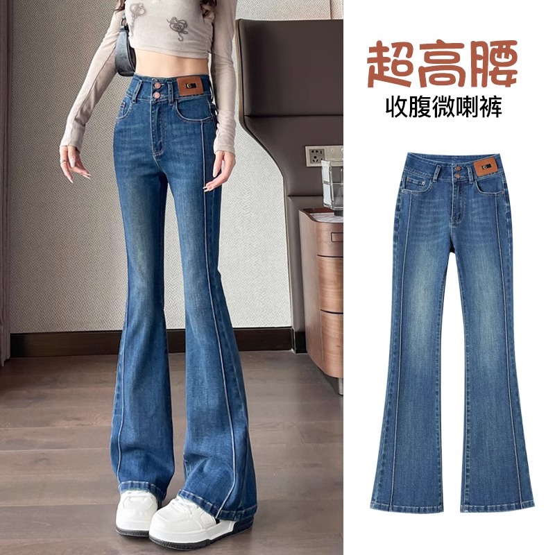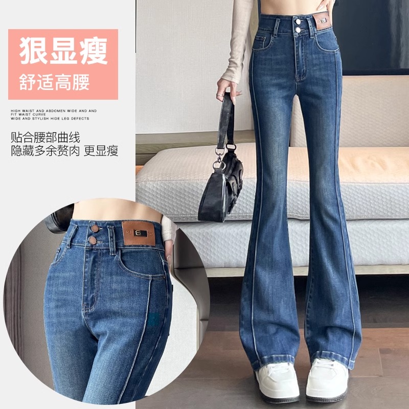 高腰微喇牛仔裤女2025新款弹力修身显瘦小个子美式复古马蹄喇叭裤