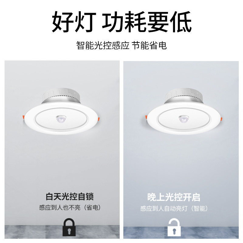 人体感应楼道声控雷达天花筒灯