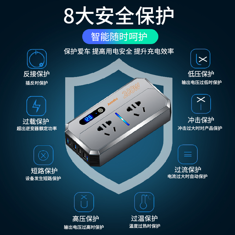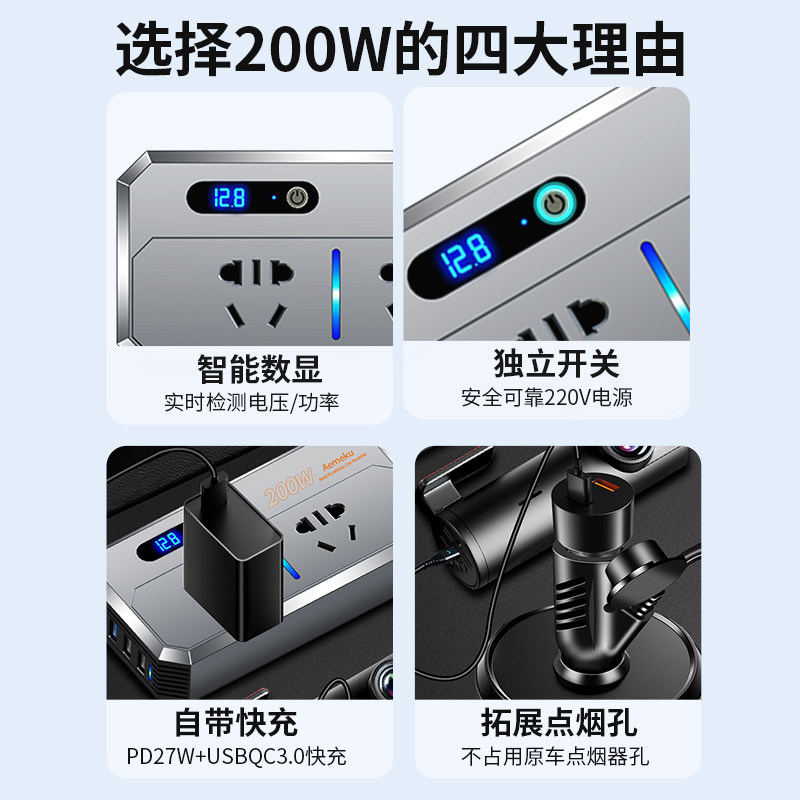 车载充电器12V24V转220V大功率逆变器汽车电源点烟器转换插头快充