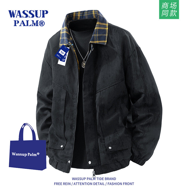 WASSUP PALM外套男款2025新款秋冬加绒港风休闲宽松扎染飞行夹克