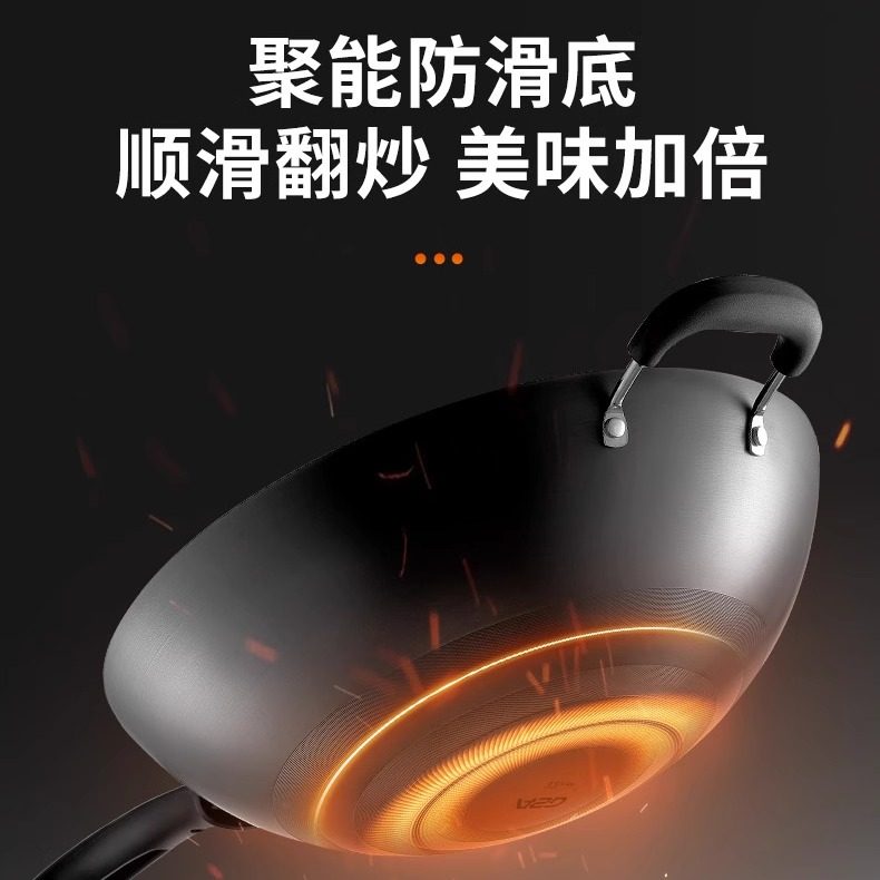爱仕达大铁锅炒锅不生锈家用圆底无涂层不粘燃气灶尖底精铁炒菜锅
