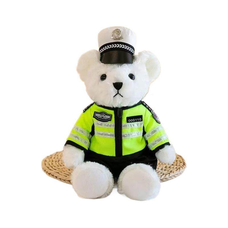 交警小熊公仔消警察小玩熊偶服防员泰迪熊毛绒玩具制女生儿1101童