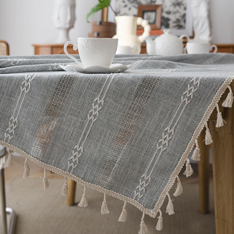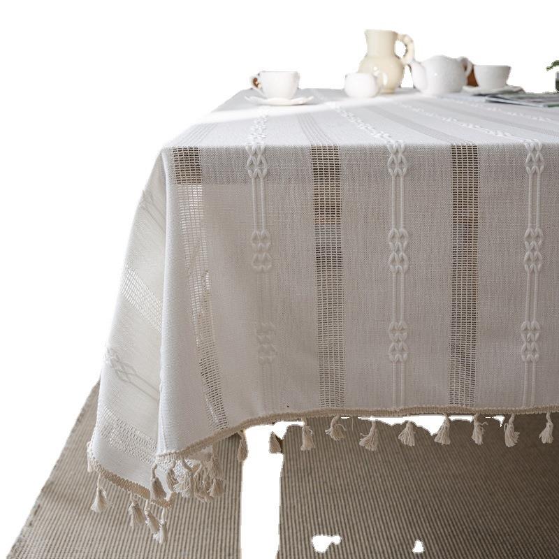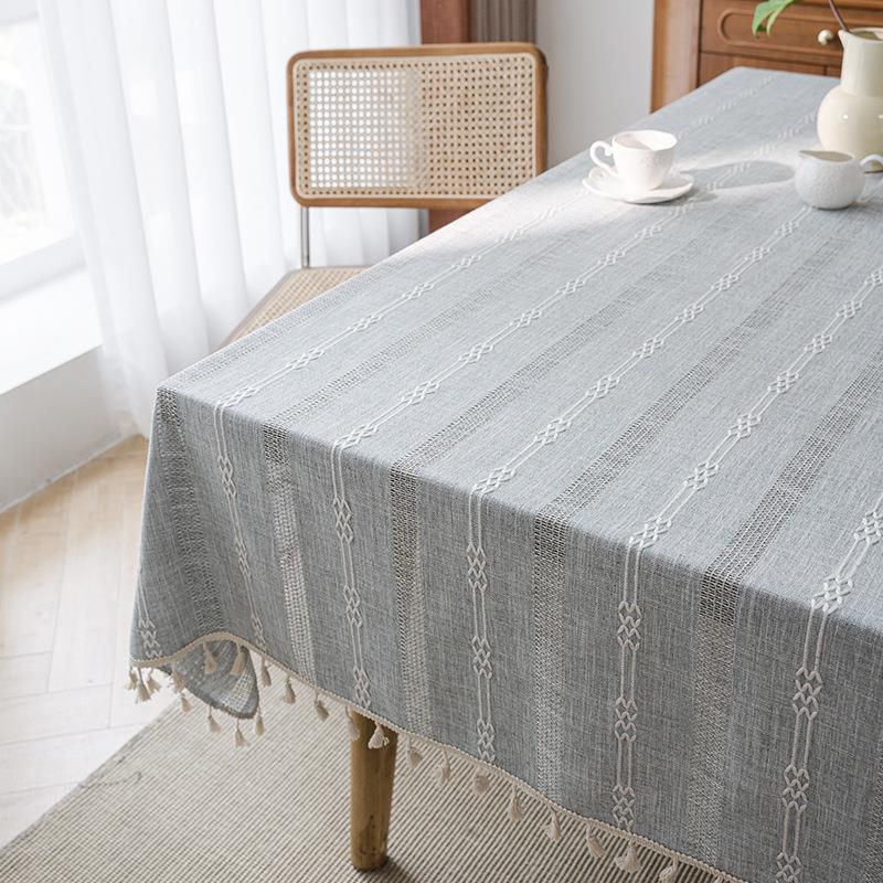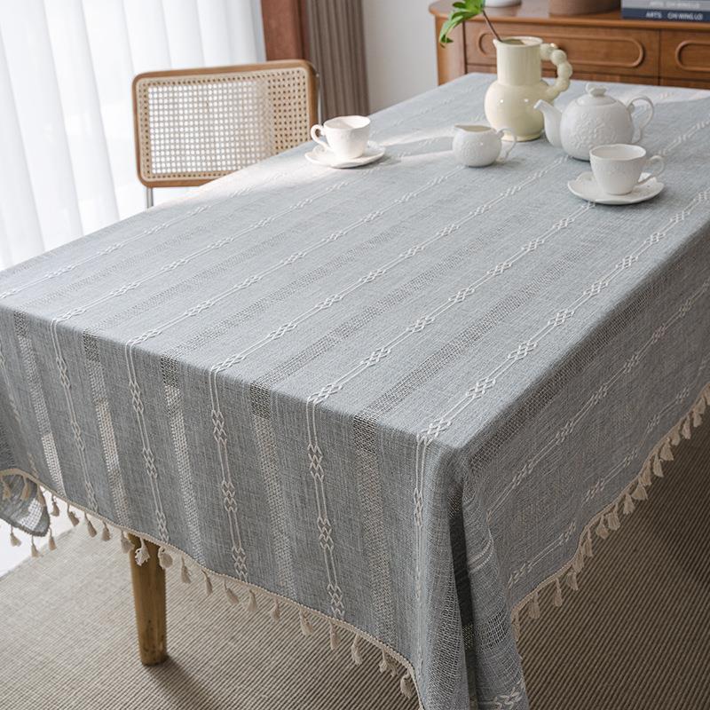 日式棉麻布艺桌布简约现代轻奢家用ins提花长方形餐桌布茶几台布
